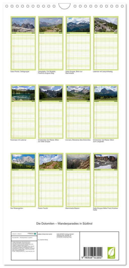 Afficher tous les détailsDie Dolomiten – Wanderparadies in Südtirol (CALVENDO Familienplaner 2026)