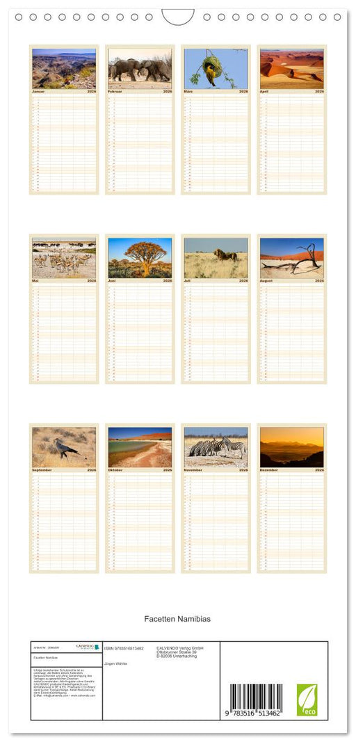 Afficher tous les détailsFacetten Namibias (CALVENDO Familienplaner 2026)