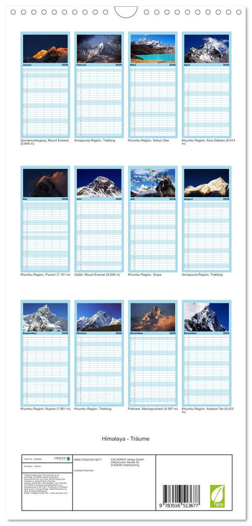Afficher tous les détailsHimalaya - Träume (CALVENDO Familienplaner 2026)