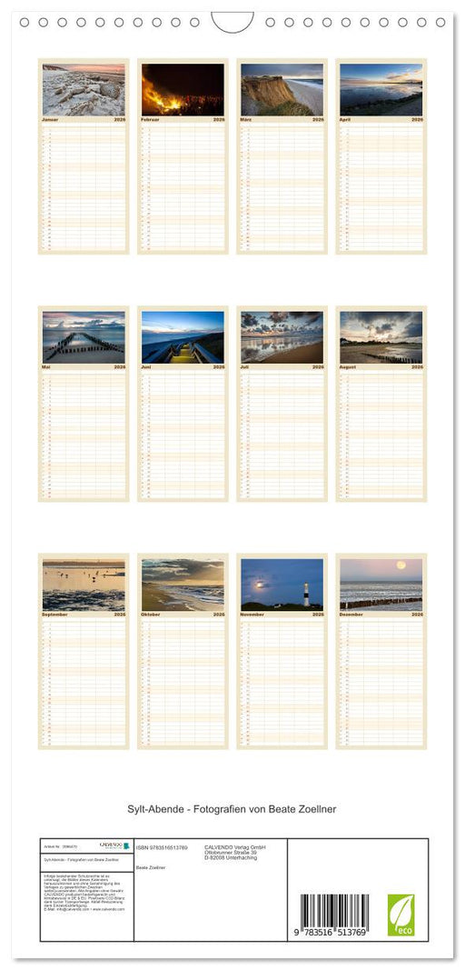 Afficher tous les détailsSylt-Abende - Fotografien von Beate Zoellner (CALVENDO Familienplaner 2026)