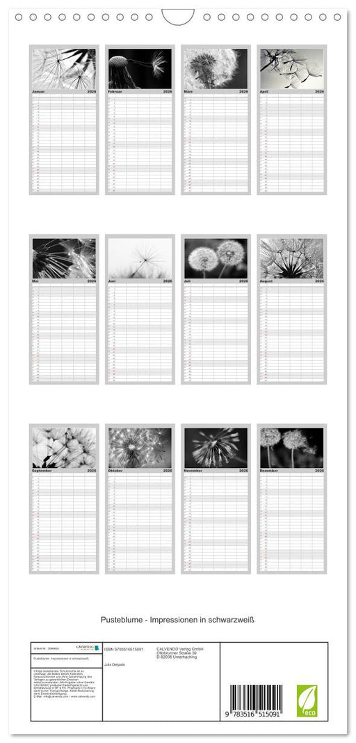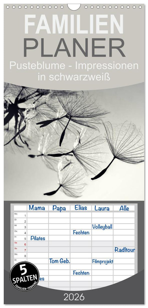 Pusteblume - Impressionen in schwarzweiß (CALVENDO Familienplaner 2026)