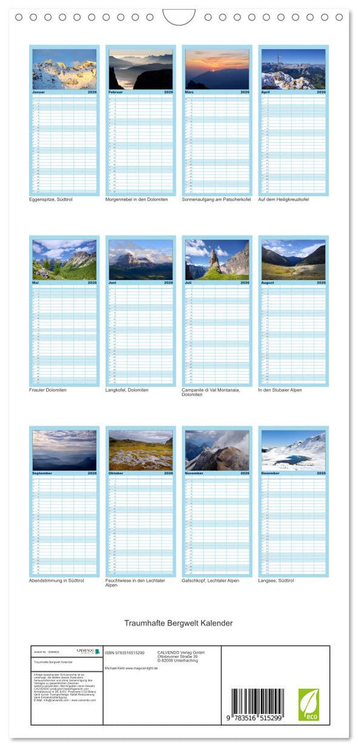 Afficher tous les détailsTraumhafte Bergwelt Kalender (CALVENDO Familienplaner 2026)
