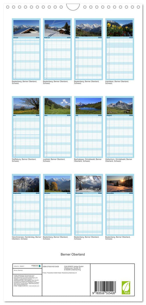 Afficher tous les détailsBerner Oberland (CALVENDO Familienplaner 2026)