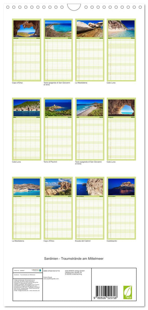 Afficher tous les détailsSardinien - Traumstrände am Mittelmeer (CALVENDO Familienplaner 2026)