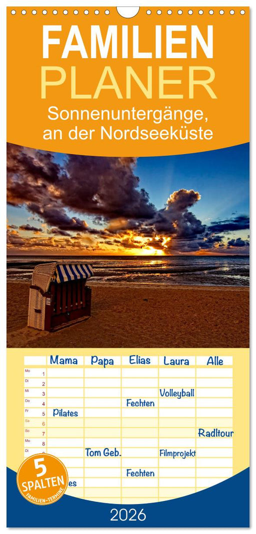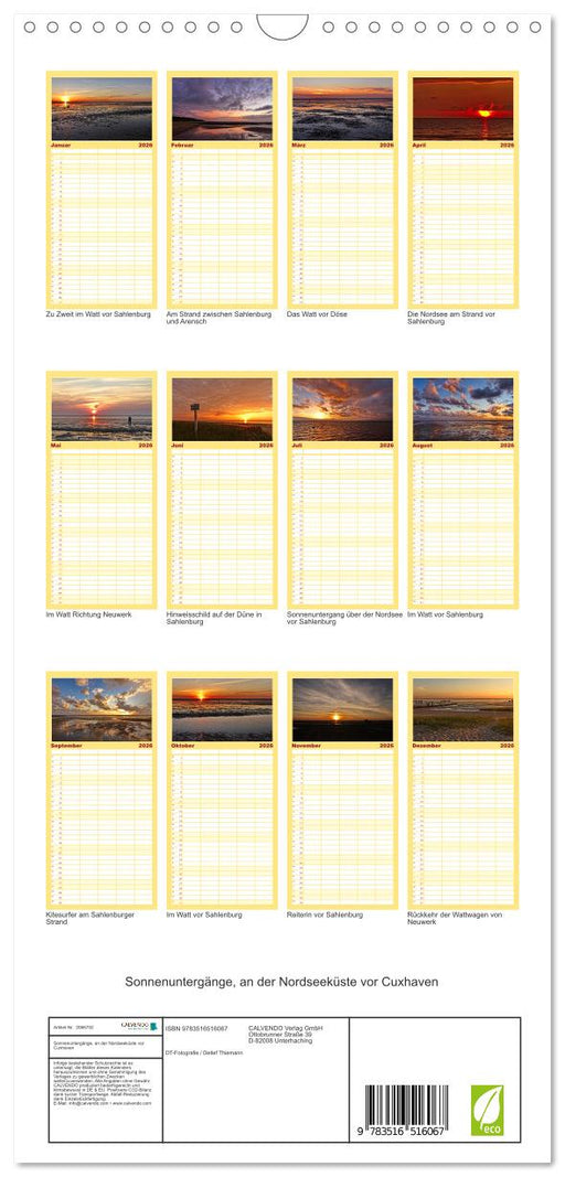 Afficher tous les détailsSonnenuntergänge, an der Nordseeküste vor Cuxhaven (CALVENDO Familienplaner 2026)