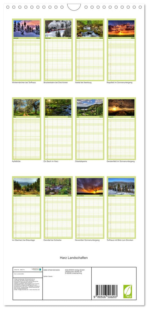 Afficher tous les détailsHarz Landschaften (CALVENDO Familienplaner 2026)