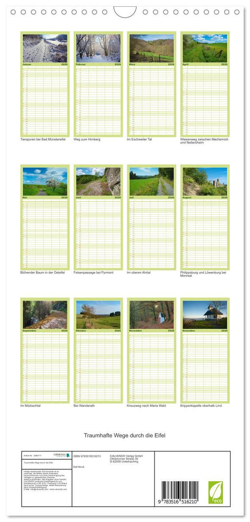 Afficher tous les détailsTraumhafte Wege durch die Eifel (CALVENDO Familienplaner 2026)