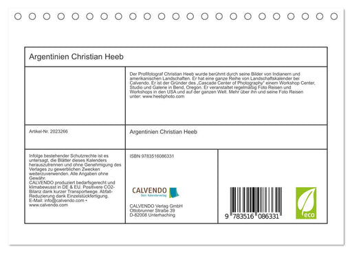 Afficher tous les détailsArgentinien Christian Heeb (CALVENDO Wandkalender 2026)