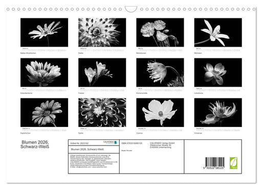 Afficher tous les détailsBlumen 2026, Schwarz-Weiß (CALVENDO Wandkalender 2026)