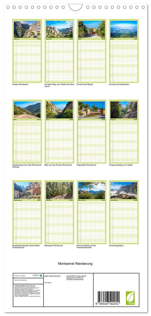Afficher tous les détailsMontserrat Wanderung (CALVENDO Familienplaner 2026)