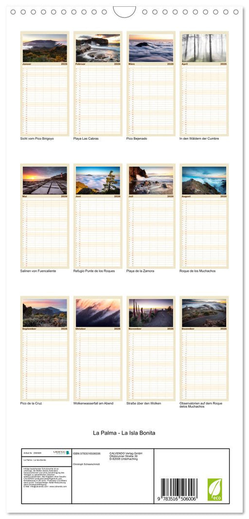 Afficher tous les détailsLa Palma - La Isla Bonita (CALVENDO Familienplaner 2026)