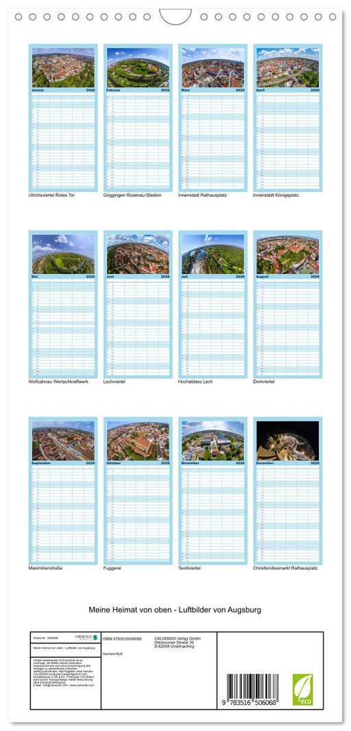 Afficher tous les détailsMeine Heimat von oben - Luftbilder von Augsburg (CALVENDO Familienplaner 2026)