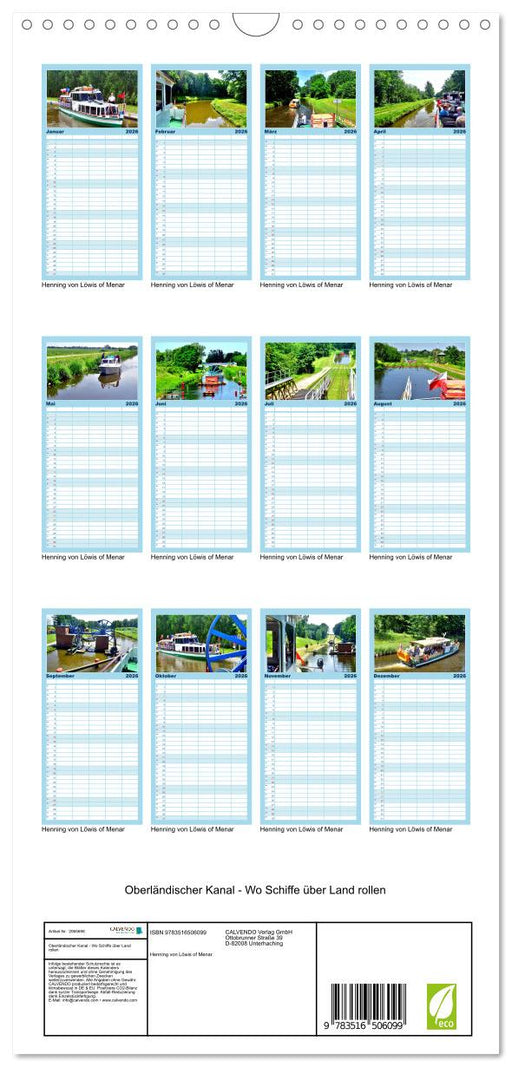 Afficher tous les détailsOberländischer Kanal - Wo Schiffe über Land rollen (CALVENDO Familienplaner 2026)