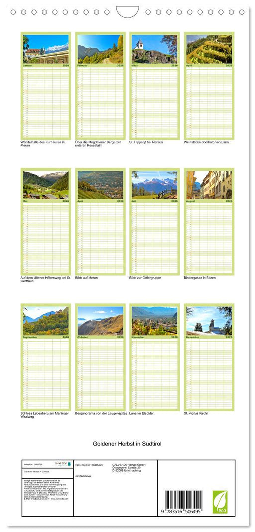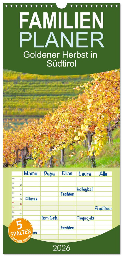 Afficher tous les détailsGoldener Herbst in Südtirol (CALVENDO Familienplaner 2026)