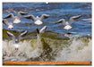 Februar: Wellen reitende Lachmöwen am Ostseestrand von Heringsdorf