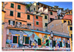 Februar: Wandmalerei und farbenfrohe Häuser in Riomaggiore.