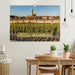 Juli: Garten mit den Spitzen des Doms. Das Marktgärtner-Viertel Bamberg gehört zur Liste des Welterbes