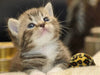 Die Britisch-Kurzhaar-Katze ist eine ruhige Rasse mit liebenswertem Charakter. Hier ist Leroy, ein 4 Wochen alter black-silver-tabby-classic-white Kater, zu sehen. Ein liebes und verspieltes Katzenbaby.