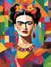 Das moderne Frauenporträt inspiriert von Frida Kahlo im geometrischen Stil verbindet Ausdruckskraft, Emotion und Farbvielfalt zu einem echten Statement-Piece – ideal für alle, die Kunst mit Bedeutung lieben.