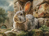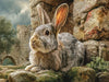 Ein Kaninchen bei den Felsruinen sitzend