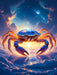 Ein gewaltiger Himmelskrebs mit acht funkelnden Beinen erhebt sich aus einem Meer aus Sternennebel. Sein Panzer reflektiert das Licht ferner Sonnen. Er symbolisiert Schutz, Intuition und die Macht des Rückzugs.