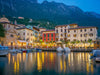 Der romantisch beleuchtete Hafen von Malcesine, eingefangen in einem einzigartigen Moment – ein Motiv, das die stille Schönheit des Gardasees bei Nacht zum Leben erweckt.