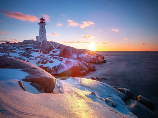 Der Leuchtturm von Peggy’s Cove trotzt den eisigen Temperaturen an der Küste Nova Scotias. Bei unter –10 °C hat sich die raue Felslandschaft in e...
