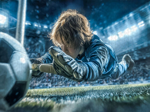 Pure Fußball-Leidenschaft für Kinderzimmer und Wohnzimmer! Dieses dynamische Illustration fängt den Zauber des Spiels perfekt ein, junge Fußballe...