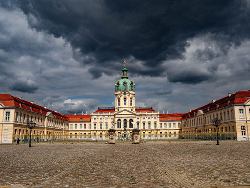 Schloss Charlottenburg im Sonnenlicht Majestätisch und dramatisch zugleich: Das Schloss Charlottenburg strahlt im Sonnenlicht, während dunkle Wolk...