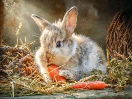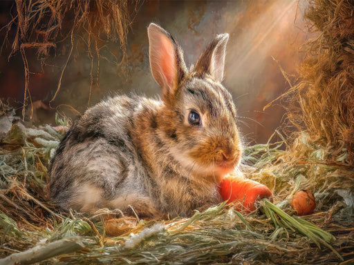 Kaninchen am Möhrchen knabbern Erleben Sie ki-generierte Werke von niedlichen Kaninchen, eingefangen in kunstvollem Realismus. Für alle Fans diese...