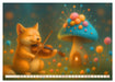 Februar: Der Geigenfuchs – Ein Fuchs spielt inmitten von Pilzen und Blumen
