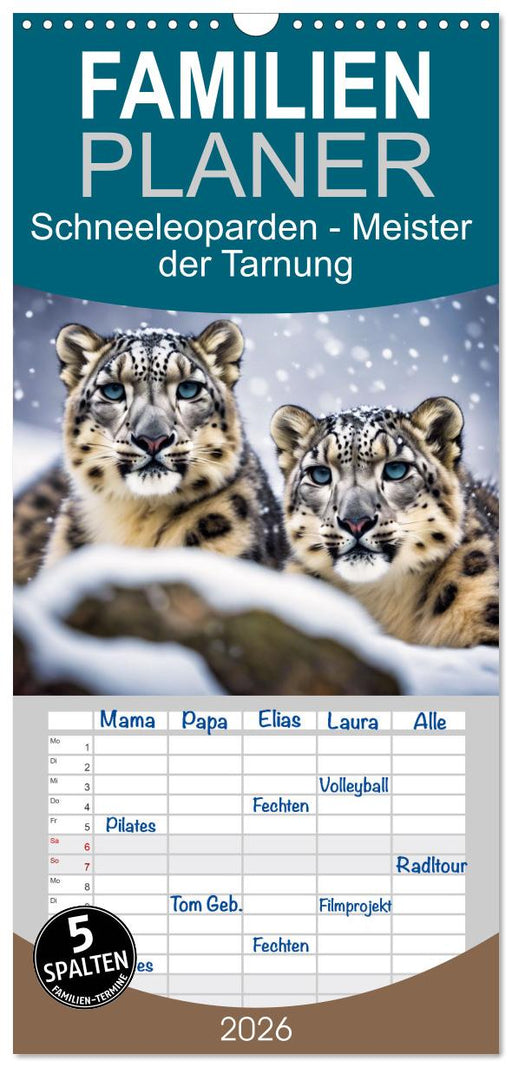 Afficher tous les détailsSchneeleoparden - Meister der Tarnung (CALVENDO Familienplaner 2026)