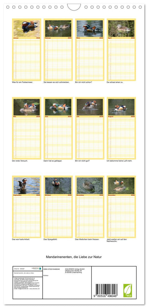 Afficher tous les détailsMandarinenenten, die Liebe zur Natur (CALVENDO Familienplaner 2026)