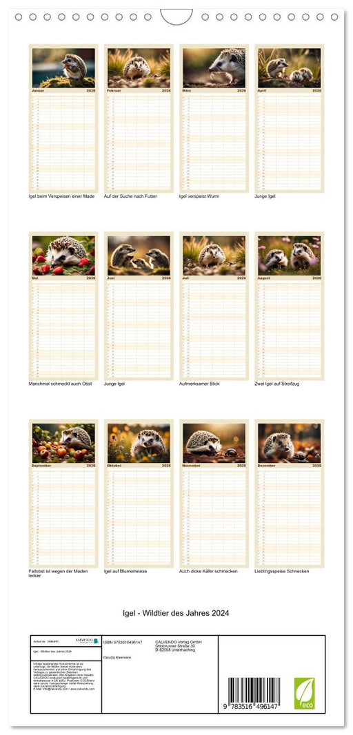 Afficher tous les détailsIgel - Wildtier des Jahres 2024 (CALVENDO Familienplaner 2026)