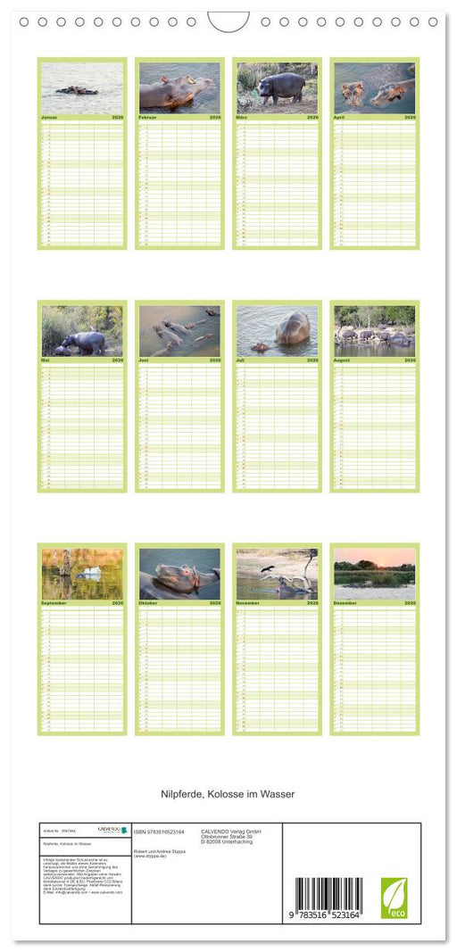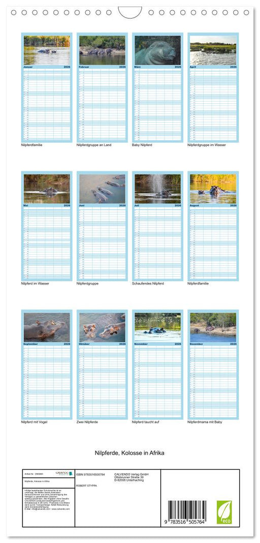 Afficher tous les détailsNilpferde, Kolosse im Wasser (CALVENDO Familienplaner 2026)