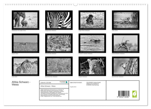 Afrikas Tierwelt in Schwarz - Weiss (Monatskalender, 14 Seiten) Typische Tieraufnahmen aus Afrika einmal anders. Die Gestaltung in Schwarz - Weiss...