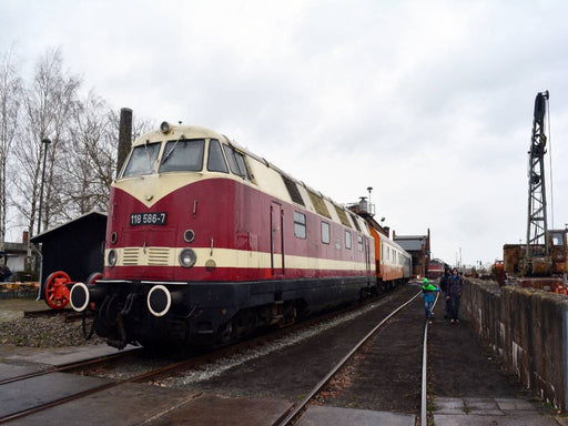 Ein Motiv aus dem Kalender "U-Boot trifft Babelsbergerin. Die Baureihen 118 und 119 der Deutschen Reichsbahn" von Wolfgang Gerstner: Die heute his...