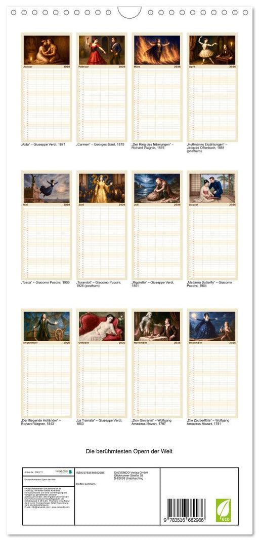 Afficher tous les détailsDie berühmtesten Opern der Welt (CALVENDO Familienplaner 2026)