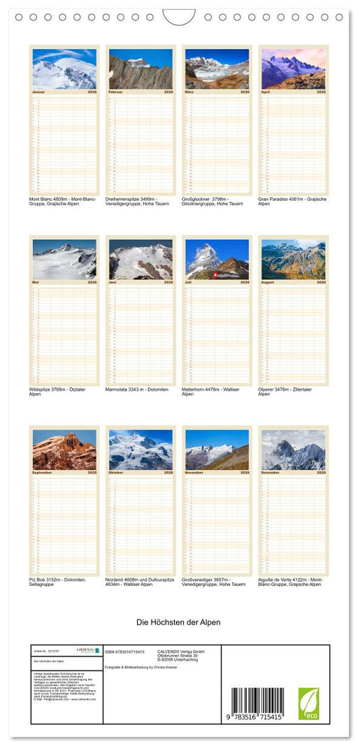 Afficher tous les détailsDie Höchsten der Alpen (CALVENDO Familienplaner 2026)