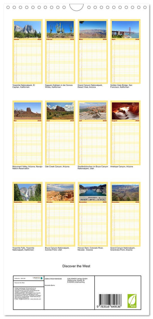 Afficher tous les détailsDiscover the West (CALVENDO Familienplaner 2026)