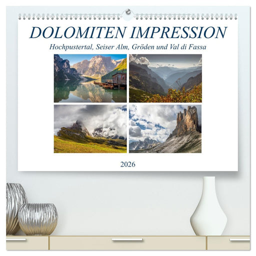 Afficher tous les détailsDolomiten Impression, Hochpustertal, Seiser Alm, Gröden, Val di Fassa (CALVENDO Premium Wandkalender 2026)