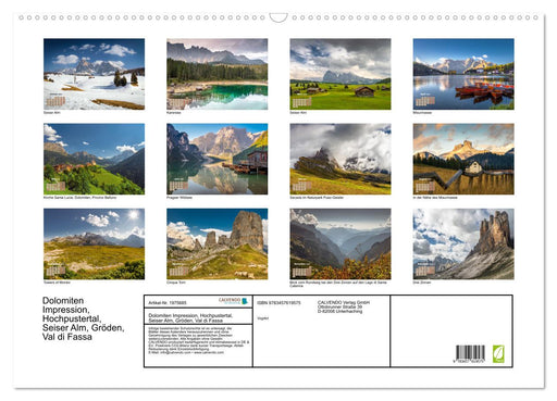 Afficher tous les détailsDolomiten Impression, Hochpustertal, Seiser Alm, Gröden, Val di Fassa (CALVENDO Wandkalender 2026)