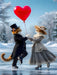 Zischen Winterzauber und zarter Romantik gleiten zwei elegante Samtpfoten mitten ins Herz der Liebe.
