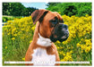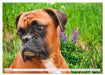 Der Boxer ist ein sehr muskulöser Hund mit stämmiger Figur. Sein Fell ist glatt und kurz. Ohren und Rute werden naturbelassen, kupieren ist heute in fast ganz Europa verboten. Die Rasse gilt als ausgeglichener und selbstbewusster Hund. Aufgrund seiner Kraft sollte man ihn energisch aber liebevoll erziehen. Heutzutage sieht man den einstigen Modehund Boxer immer seltener. Erfreuen Sie sich Monat für Monat an dieser kraftvollen Hunderasse.