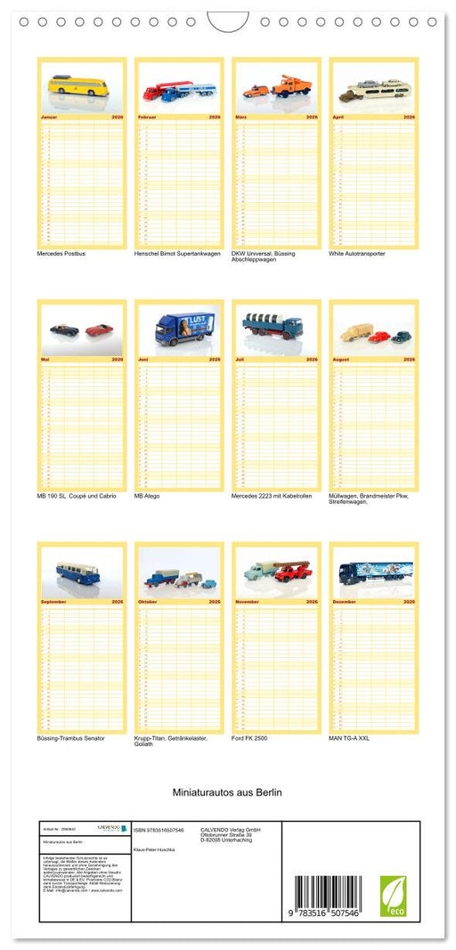 Afficher tous les détailsMiniaturautos aus Berlin (CALVENDO Familienplaner 2026)