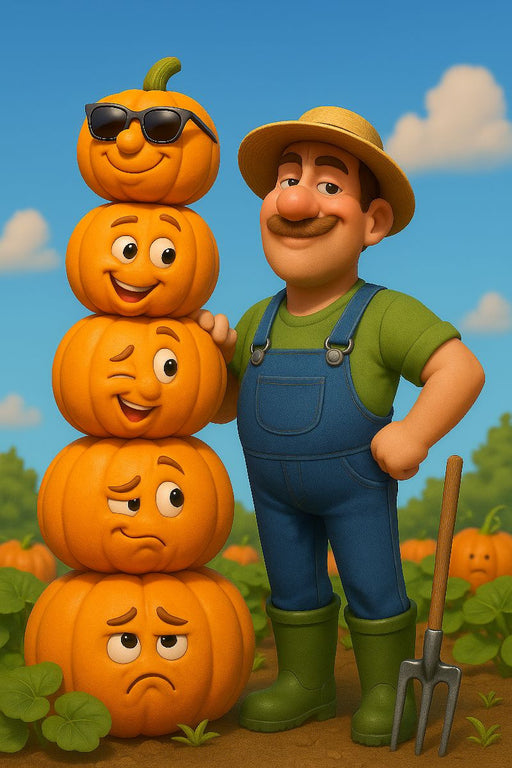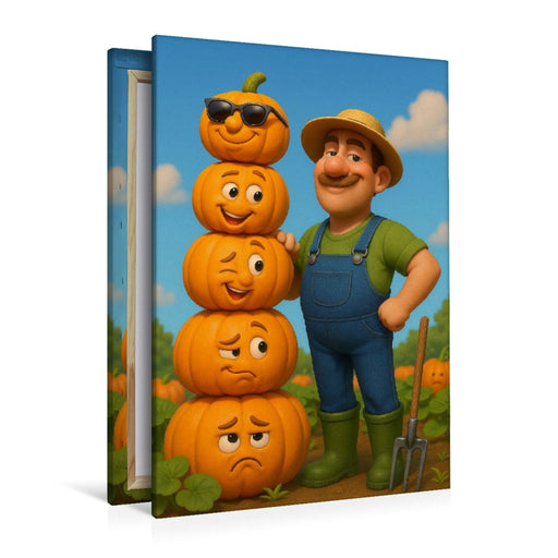 Afficher tous les détailsPremium Textil-Leinwand Kürbisstolz - Gärtner mit Kürbis
