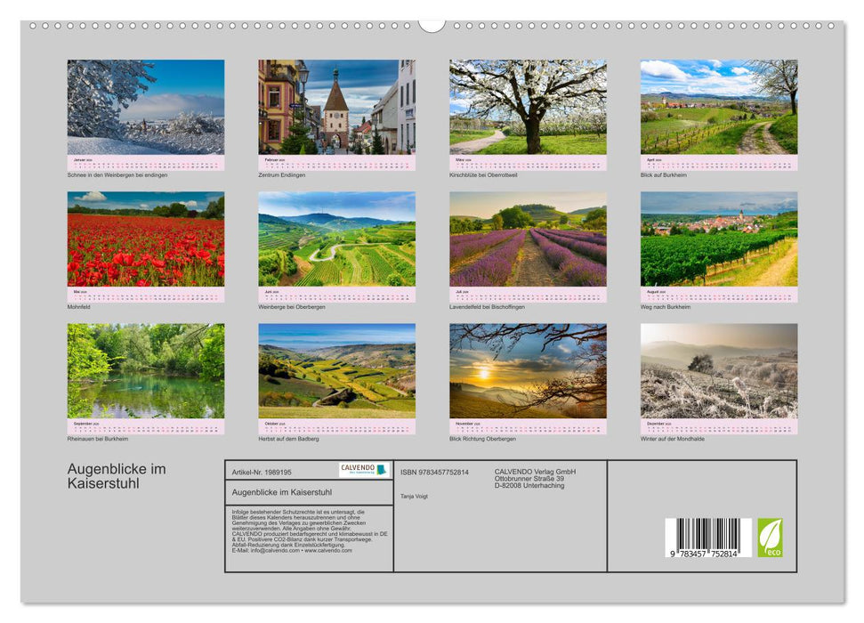 Weinberge so weit das Auge reicht, eingebettet zwischen Schwarzwald und Vogesen, bezeichnet man den Kaiserstuhl auch als Toskana Deutschlands. (Monatskalender, 14 Seiten)