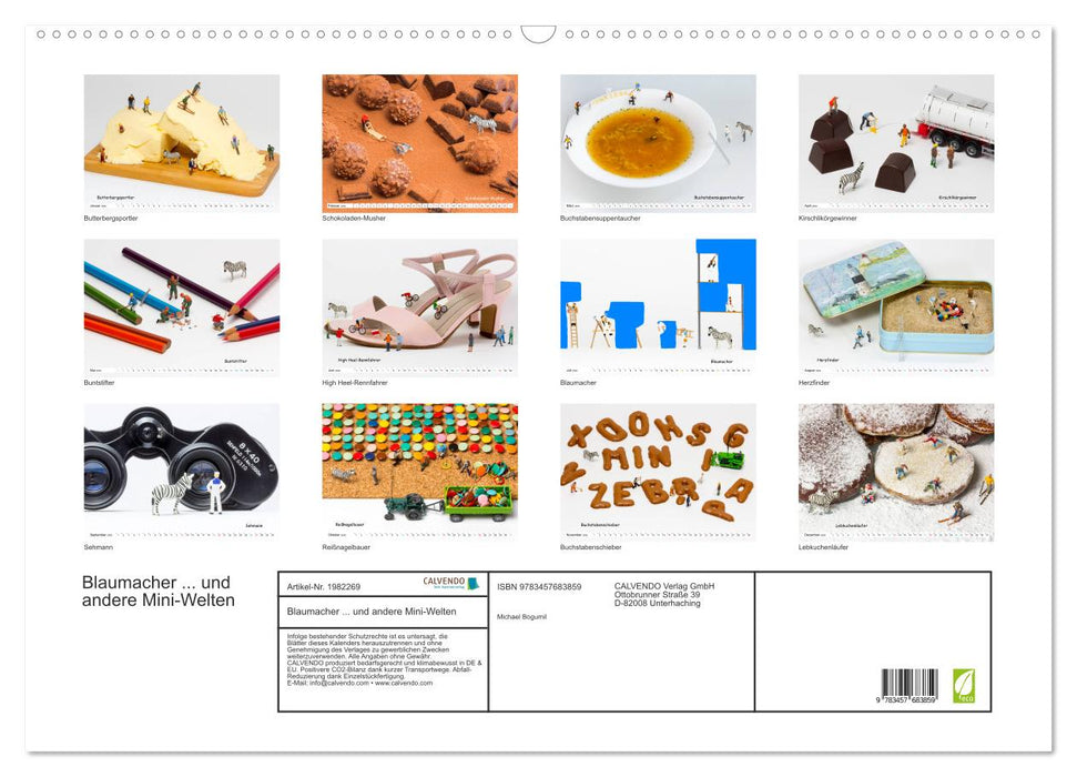 Haben Sie schon etwas von den Herzfindern, den Lebkuchenläufern oder den Buntstiftern gehört? Bereits zum fünften Male können Sie in einem Werk aus dem Calvendo-Verlag beobachten, welche lustigen und oft skurrilen Situationen entstehen können, wenn man den Figuren im Maßstab H0 (1:87) ihren freien Lauf lässt. Ideal auch für diejenigen, die Ihren Mitmenschen ein wenig Freude schenken möchten!