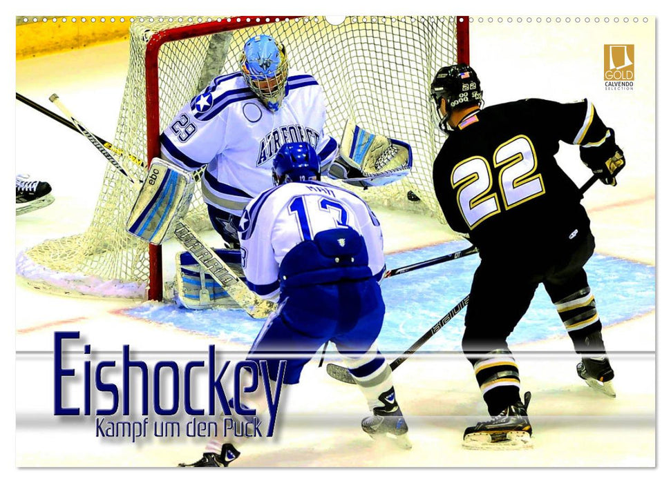 Eishockey ist eine der schnellsten und härtesten Mannschaftssportarten. Beim Kampf um den Puck geht es nicht gerade zimperlich zu. Der außergewöhnliche Kalender zeigt beeindruckende Spielszenen dieses anspruchsvollen Teamsports beim dynamischen Spiel auf spiegelglatter Eisfläche. Ein teamneutraler Kalender, der allen Eishockeyfans bestimmt viel Freude bereitet. Das ideale Geschenk für alle Freunde des Eishockeysports. Dieser qualitativ hochwertige Kalender gehört zur exklusiven CALVENDO Gold-Edition.