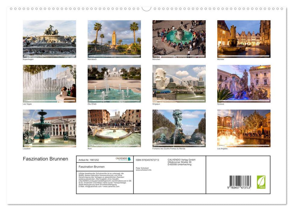 Das Spiel mit dem plätscherndem Wasser hat die Menscheit bereits seit jeher fasziniert. Dieser Kalender vom Reisefotografen Peter Schickert zeigt 12 wunderbare Brunnen von Münster bis Kalifornien.